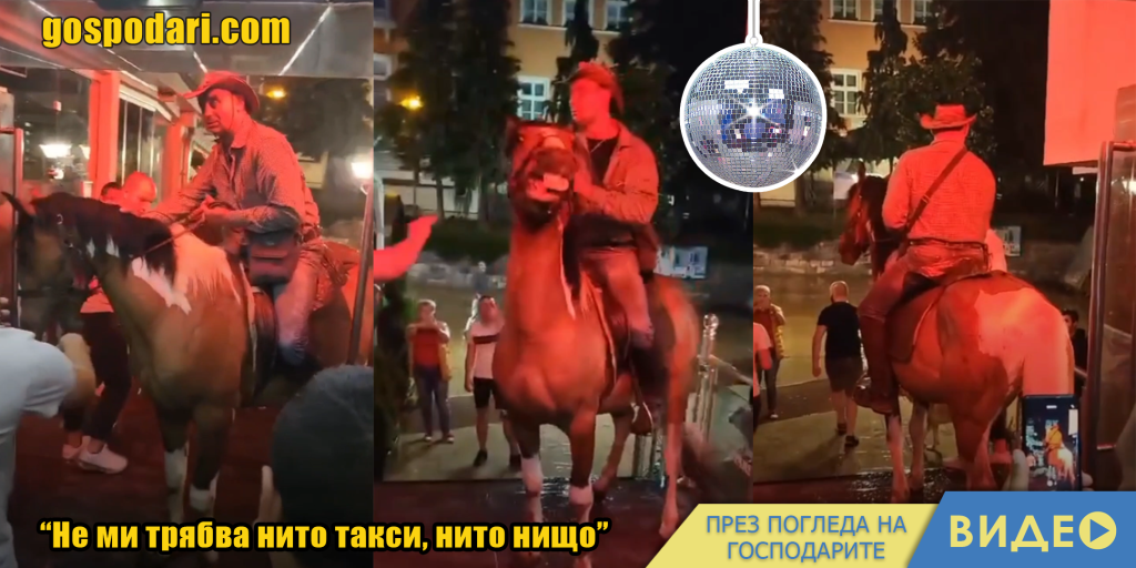 Живко Ризов, видимо пийнал, почти успя да влезе в преддверието на нощен клуб в Смолян със своя кон. На записа се вижда как Ризов пада при опит да се разправи с персонала на заведението.