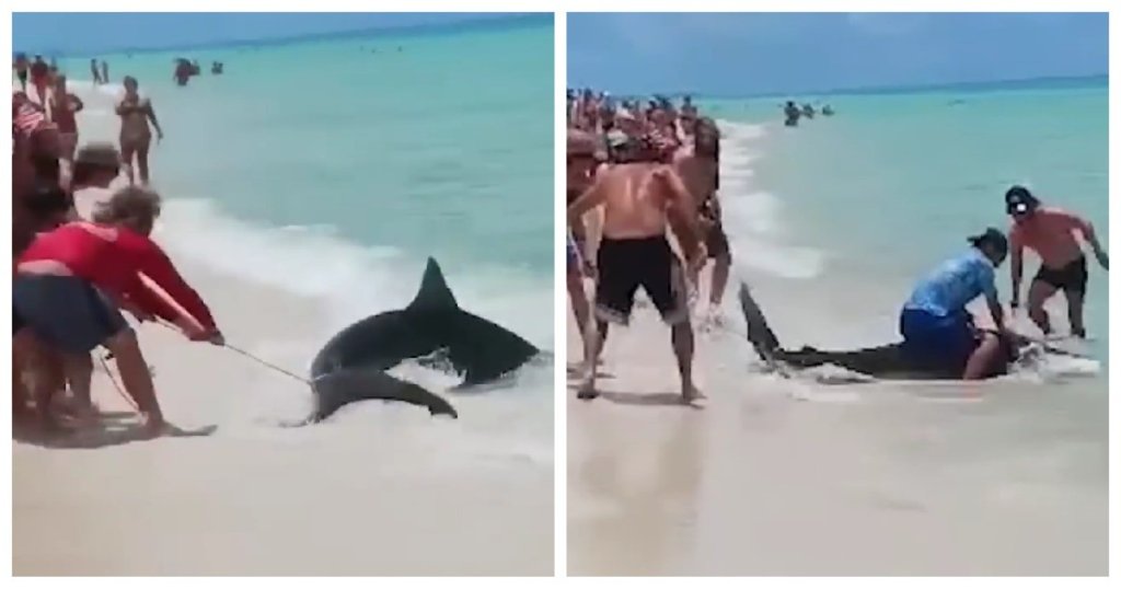 Американец яхна акула на плажа - ситуацията е заснета на видео. Морският обитател е изхвърлен на крайбрежието във Флорида.