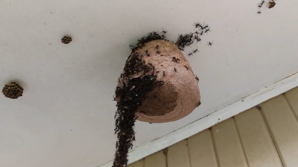 Авторът на видеото пояснява, че когато мравките се втурнат в такава масирана атака, обикновено осите вече са побегнали от гнездото си. Труженичките от своя страна не напускат, докато не пренесат всички оставени медни пити, ларви, какавиди и яйца, наред с останалите възрастни насекоми, които не са успели да избягат.