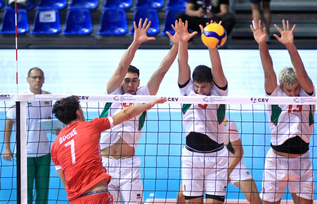 Селекционерът Мирослав Живков избра да започнат Симеон Николов, Кристиян Титрийски, Александър Къндев, Жасмин Величков, Костадин Козелов, Стелиян Делибосов и либеро Константин Чипев.