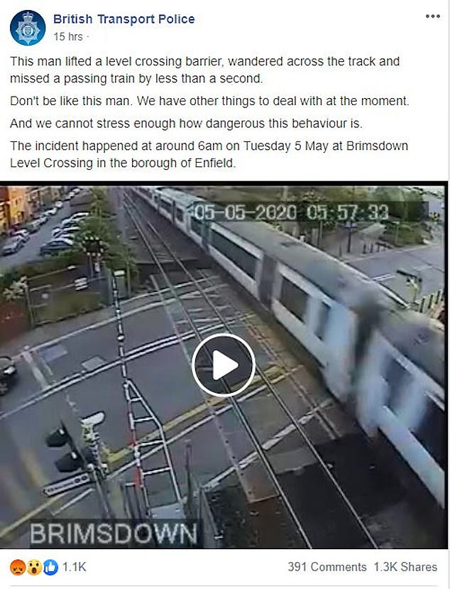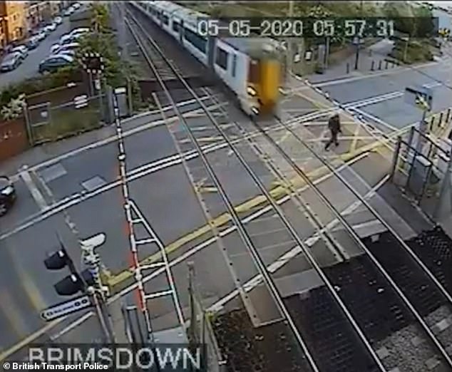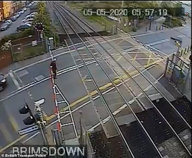 Драматичното видео, заснето в ранното утро на 5 май, бе припомнено от „Британската транспортна полиция” в сряда с цел да предупреди хората срещу подобно опасно поведение.
