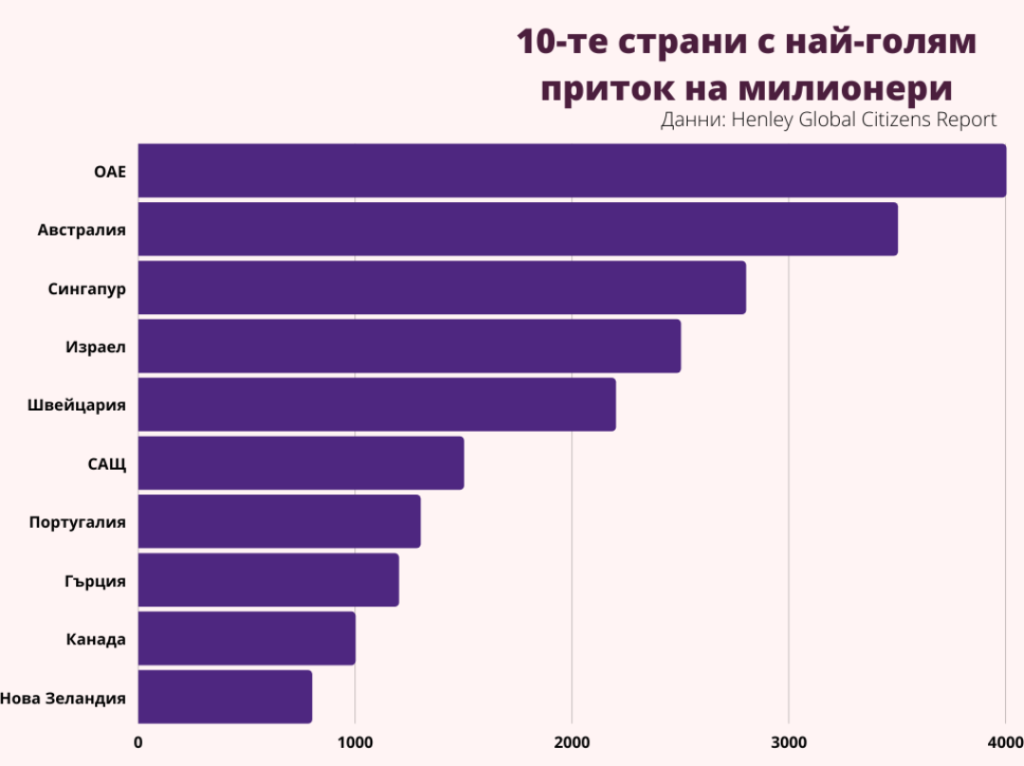 Сред най-желаните дестинации за милионери се нареждат страни от всички точки на света - Австралия, Израел, Гърция и Канада. А лидерът в това отношение са Обединените арабски емирства.