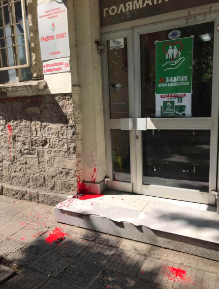 Централата на БСП в Пловдив беше залята с червена боя. За деянието, извършено на 24 май, е сезирана прокуратурата.