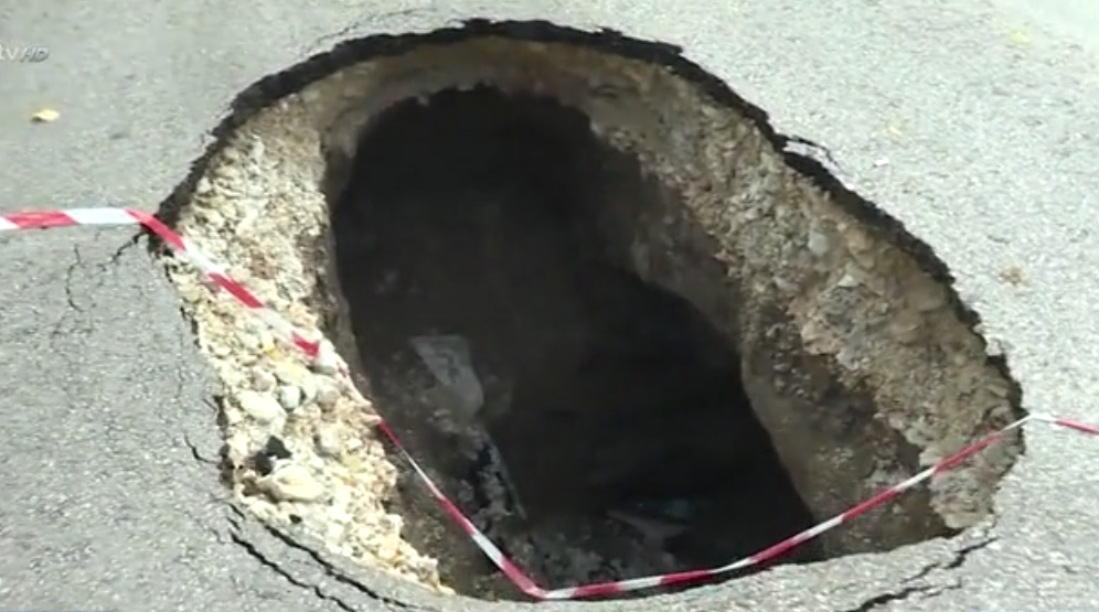 Жители на Велинград сигнализират за опасен кратер на възлова улица в града. По думите им огромната дупка се появила изведнъж, след дъжд, и погълнала асфалтовата настилка, предава bTV.