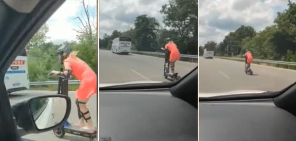 Вижте кой кара тротинетка и велосипед по магистрала (видео)