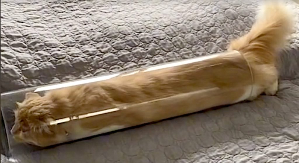 Клипчето е заснето от фотографа Нилс Якоби. Гледате и неговата неговата пухкава оранжева котка Фредерик. Косматкото успява да преобразува тялото си, за да се свие в дългата и тясна тръба.