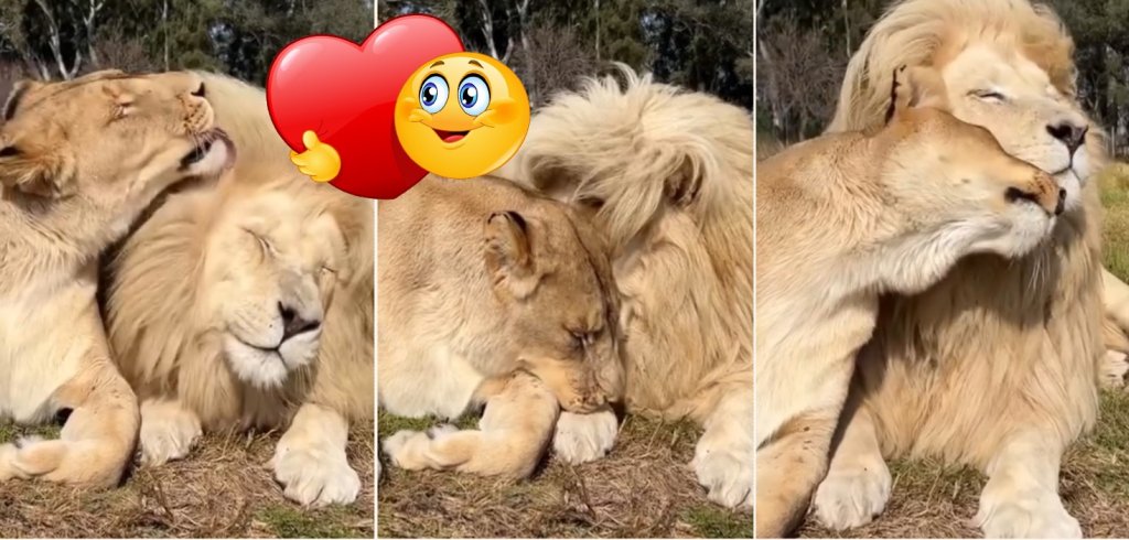 Лъв и лъвица споделят момент на обич. Видео с мили кадри на величествените животни бе публикувано в социалните мрежи. От публикацията във фейсбук групата Majestic Wild Animals става ясно, че това са Моя и Меека от Южна Африка. Двойката се любува на момента и си разменя милувки и ласки. Как изразяват любовта си един към друг, вижте още във видеото!