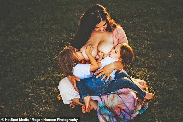 25-годишнаата Лора Смит от Мичиган, САЩ продължава да кърми синовете си Джоел, на 5, и Бенет, на 2 години, три пъти дневно и смята, че това е разковничето за доброто задраве на децата ѝ, пише DailyMail.