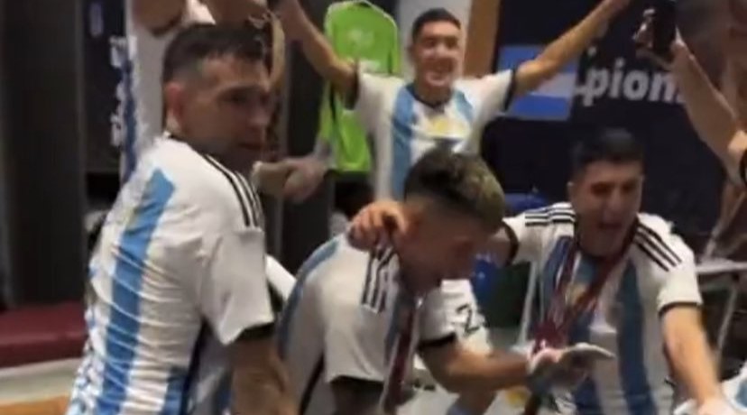 След спечелването на Световното първенство по футбол, е време за празненства. Аржентинците спазиха традицията за шумен купон и то още от съблекалнята.