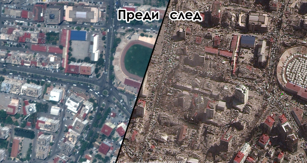Сателитни снимки разкриват местата преди и след земетресението (снимки)