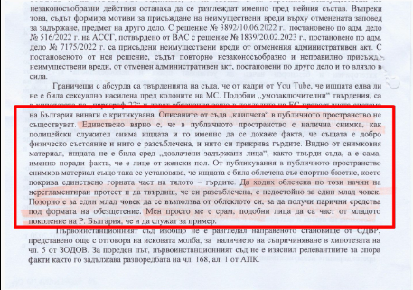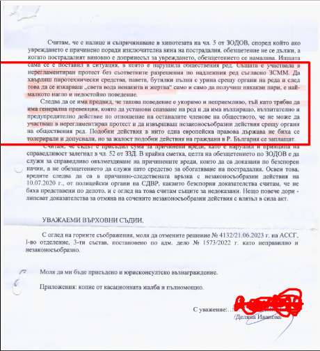 Поведението на битата зад колоните на МС Цветелина било "нагло и недостойно" според юрист на СДВР. Написаното е далеч от професионалния правен изказ.