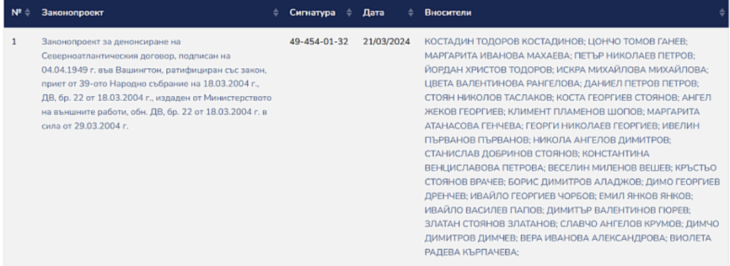 Проруската "Възраждане" внесе законопроект за излизане на България от НАТО. Според тях членството в организацията е вредно за националната сигурност на България.