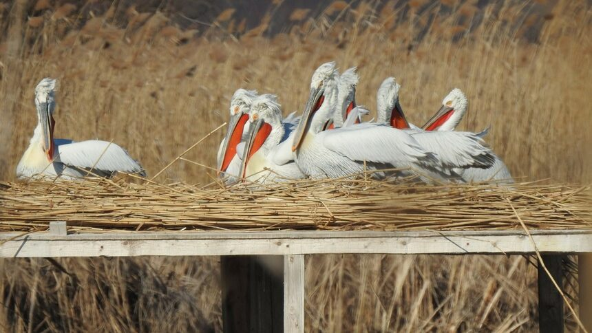"За да осигурим максимално добри условия за гнездене, построихме наколни дървени платформи, които всяка зима покриваме с тръстикови снопи. Идеята е тези конструкции да наподобяват плаващи тръстикови острови, които са любимите места за гнездене на къдроглавия пеликан.", пояснява Чешмеджиев.