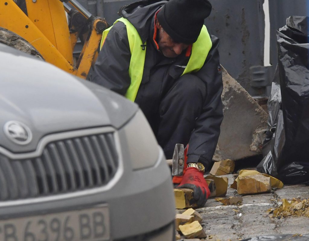 Работник поврежда с чук жълти павета на площад "Александър Невски" в София. Нередното действие попада в обектива на БулФото в късния съботен следобед.