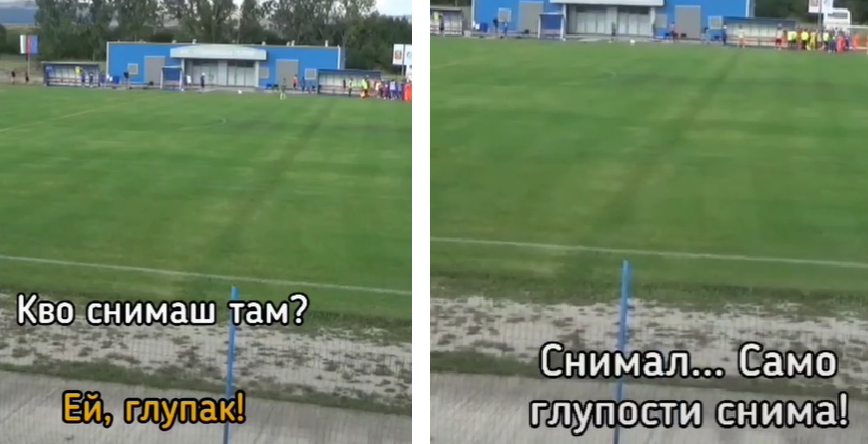 Селска свада на мач от трета лига у нас между фен и оператор. Диалогът с високото напрежение се случва на мач на отбора "Сливнишки герой". Тимът играе в Югозападна Трета аматьорска футболна лига.