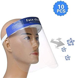 Това пък е прозрачен пластмасов щит за лице, прикрепен към мека лента за глава, който може да се регулира, за да пасне на повечето хора.