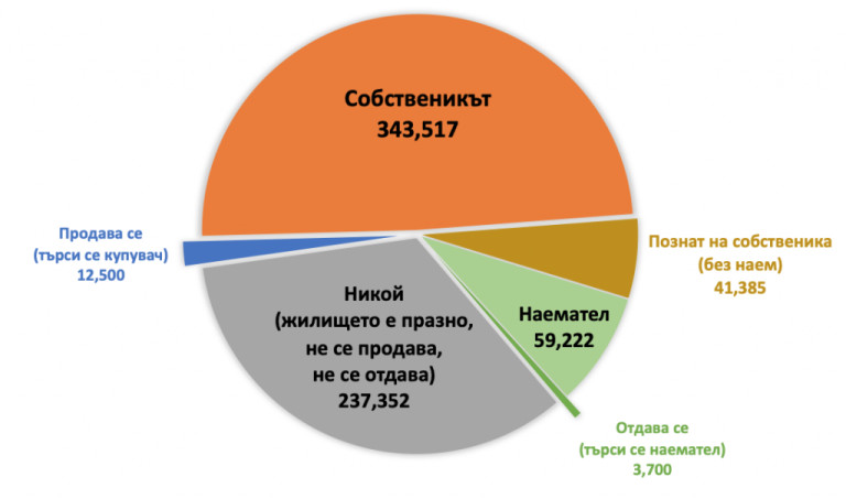 Много малка част от празните жилища се продават или отдават. В момента по-малко от 2% от жилищата в София са обявени за продажба. И по-малко от 1% от имотите са обявени за даване под наем. Огромната част от празните жилища нито се продават, нито се отдават. Те просто стоят празни. И дори и някой да иска да живее в тях, дори да иска да ги купи или да ги наеме - не може.