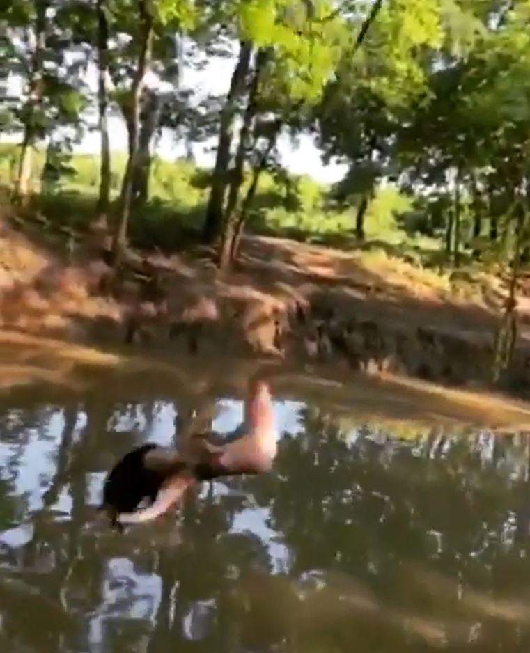 Мъж се пльосна по гръб в река, опитвайки се да впечатли приятелката си (видео и снимки)