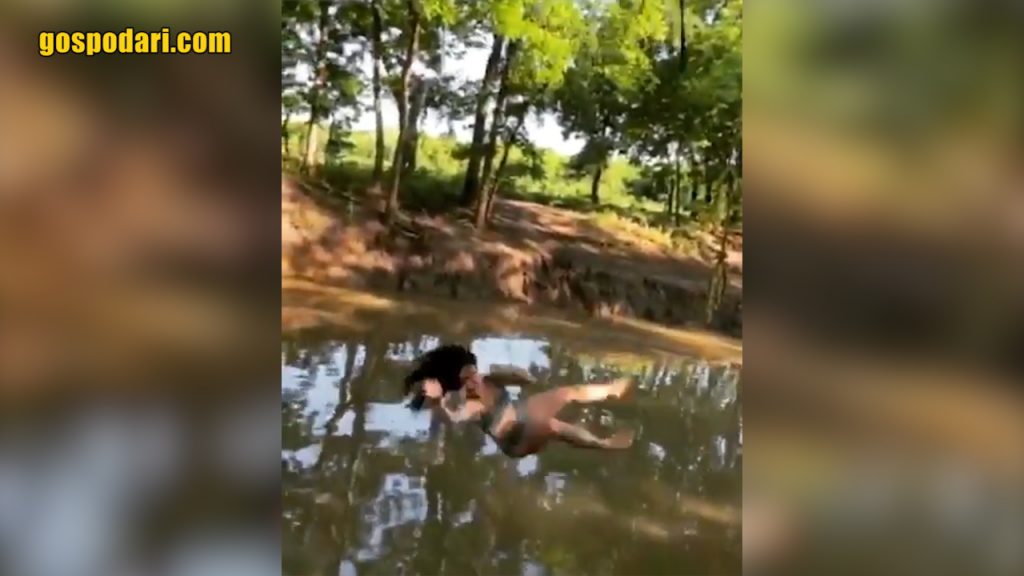 Видео от случката бе публикувано в Instagram от Myka Shae в понеделник, 18 май. В кадъра виждаме как момичето, покачено на висока дървена платформа над река, се готви за скок, придружавано от друго момиче зад нея. Тя се спуска с въжената люлка, но точно над водата като че ли се удря в невидима с просто око преграда и пада с преобръщане в реката.
