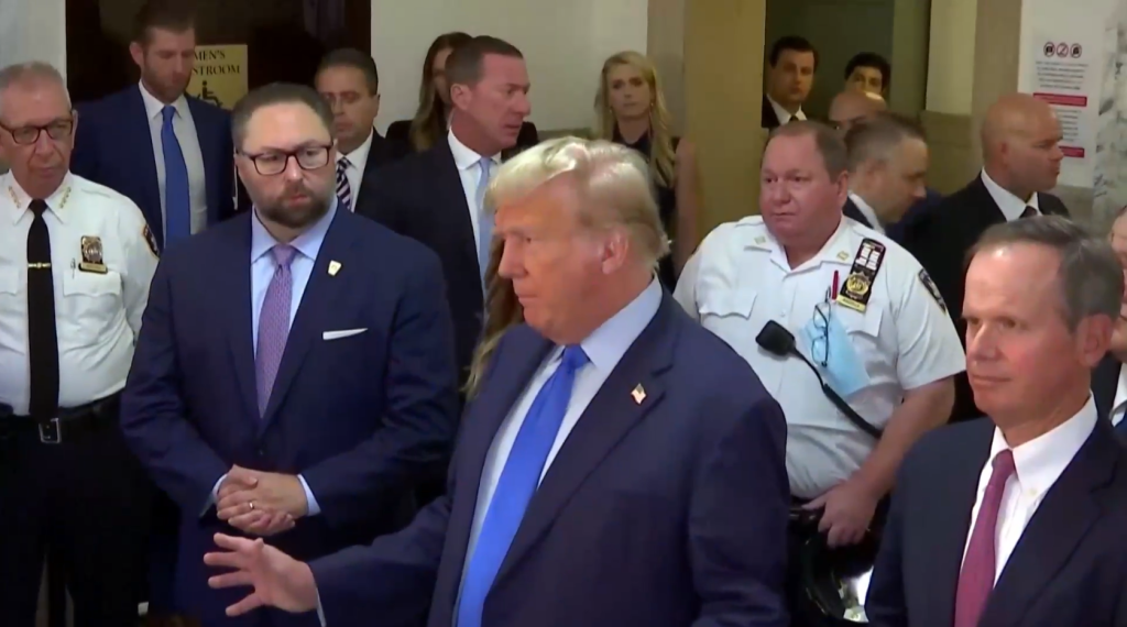 Преди пристигането на бившия американски президент главният прокурор на Ню Йорк Летисия Джеймс заяви: "Посланието ми е просто: Без значение колко сте влиятелни, без значение колко пари смятате, че имате, никой не е над закона".