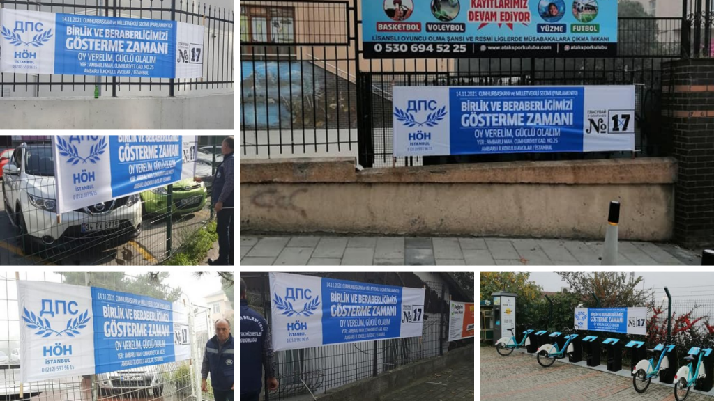 По-малки градове, както и голяма част от Истанбул са осеяни с агитационни материали за ДПС на турски език.