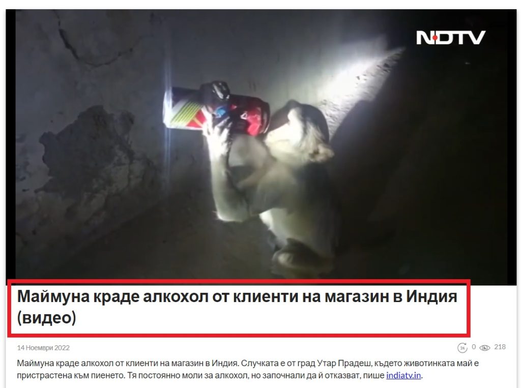 Дани Йорданов говори и за един материал на сайта Gospodari.com. Това е една палава маймуна в Индия. Тя краде алкохол от клиенти в магазин.