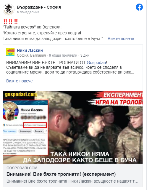Споделихме го във всички възможни проруски групи и го оставихме да живее собствен живот.